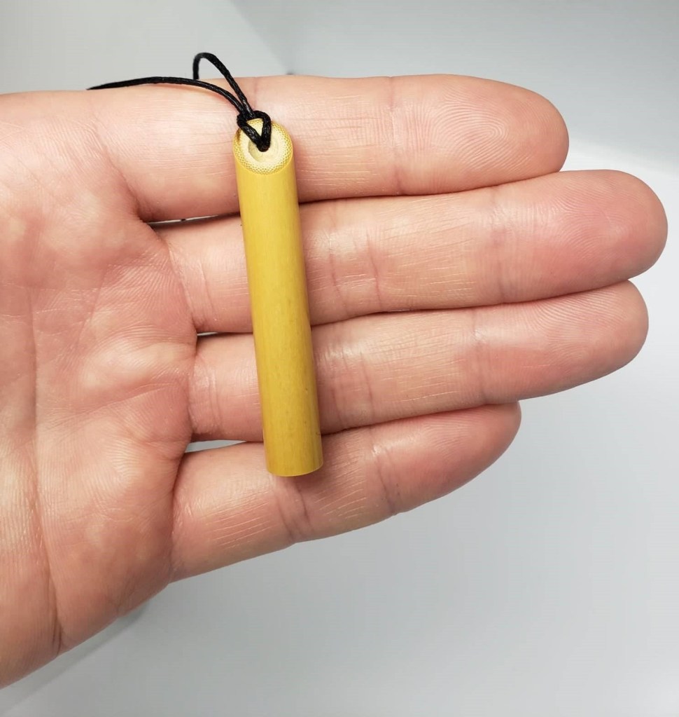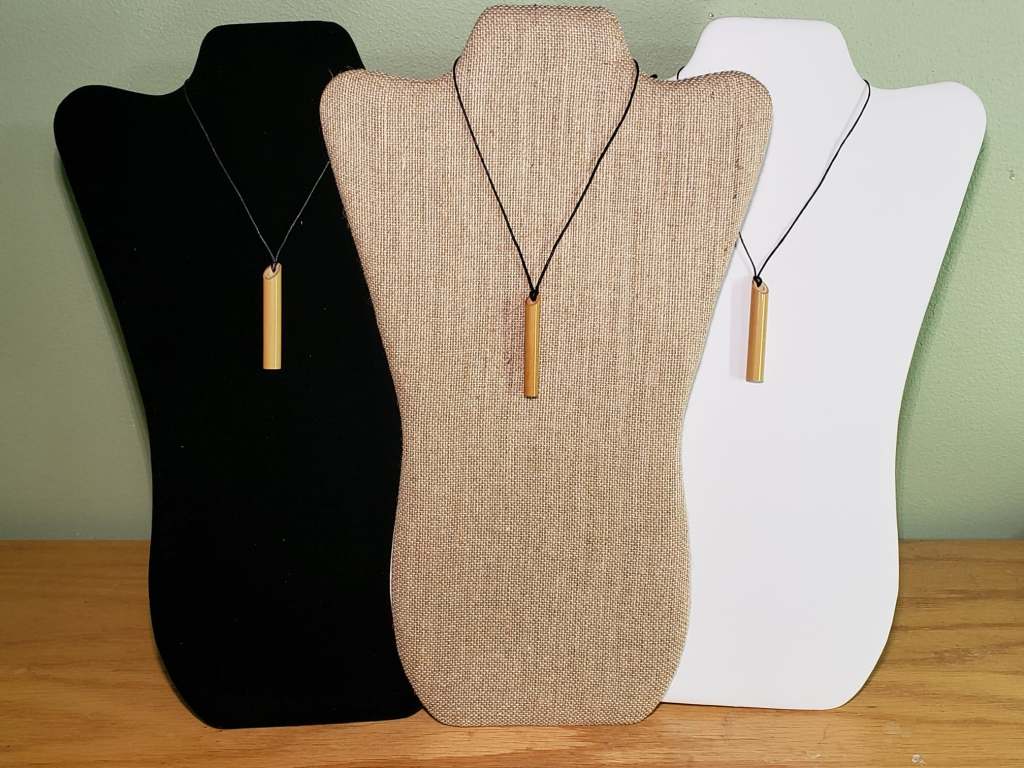 Each Stress Straw pendant is approximately 2 inches long. Stress Straws are made by nature and therefore diameters, lengths, colors and imperfections may vary. Each Stress Straws comes on a 24 inch long black 1mm waxed biodegradable cotton cord. To adjust the cord length, cut the knot and tie at the desired length around your neck. Cut off excess string.