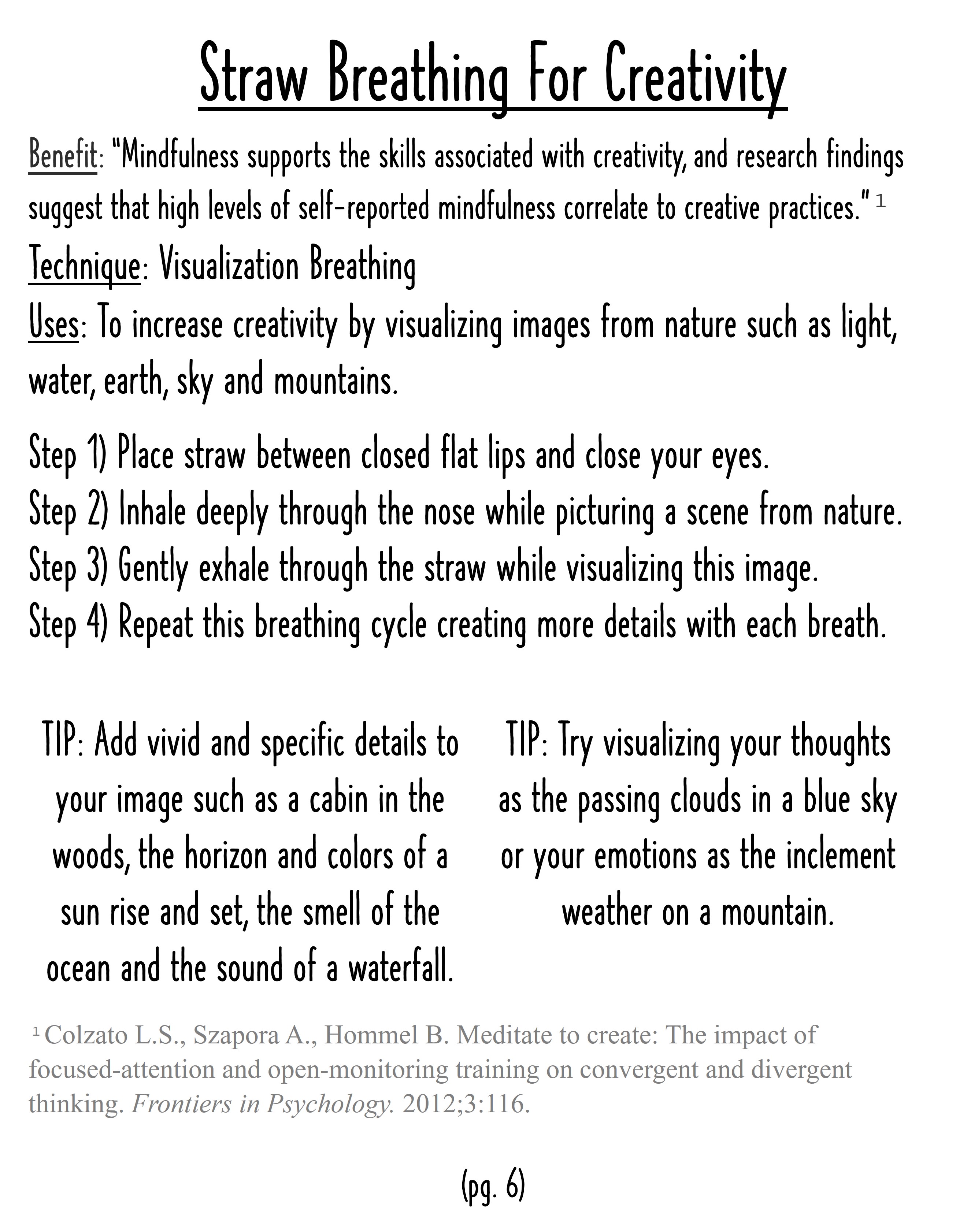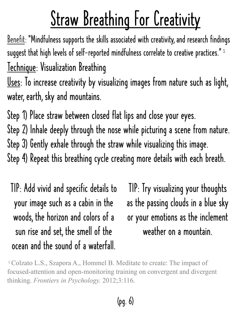 Benefit. “Mindfulness supports the skills associated with creativity, and research findings suggest that high levels of self-reported mindfulness correlate to creative practices.”