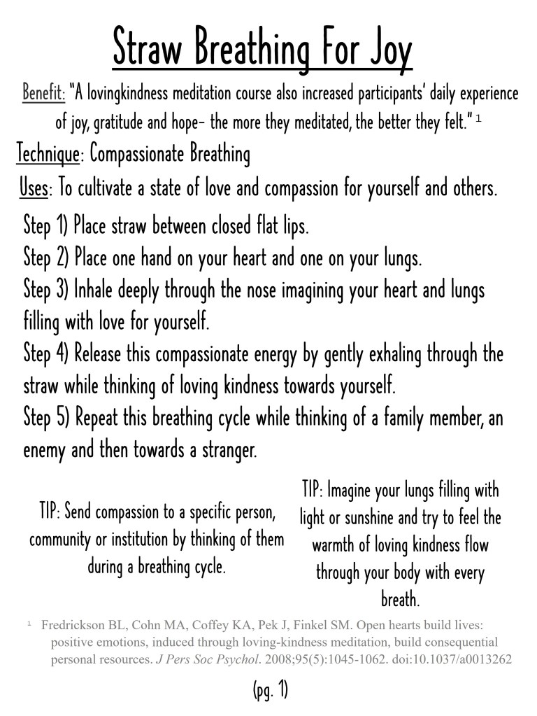 Step 4. Release this compassionate energy by gently exhaling through the straw while thinking of loving kindness towards yourself.
